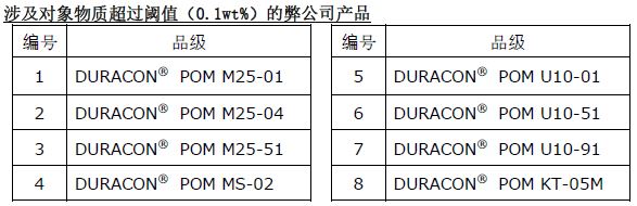 第26次关于使用SVHC高度关注物质的本公司产品
